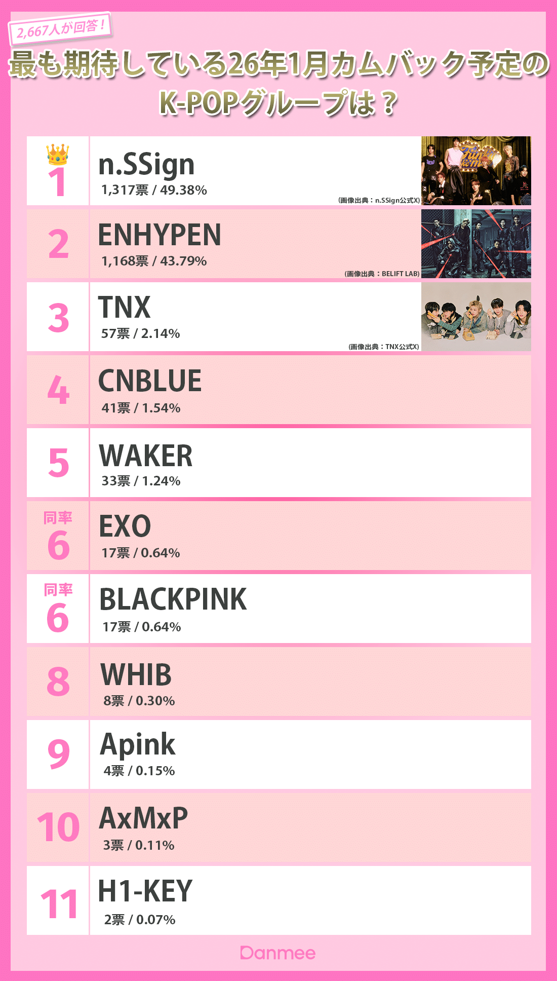 n.SSignが1位に輝く!26年1月K-POPカムバック期待度アンケート結果発表