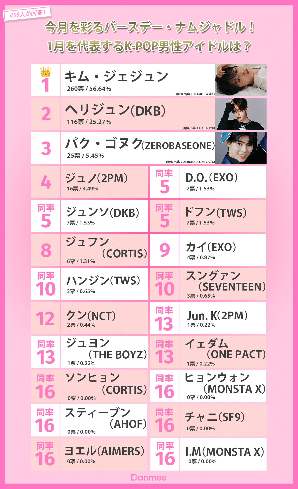 『今月を彩るバースデー・ナムジャドル!1月を代表するK-POP男性アイドルは?』全順位