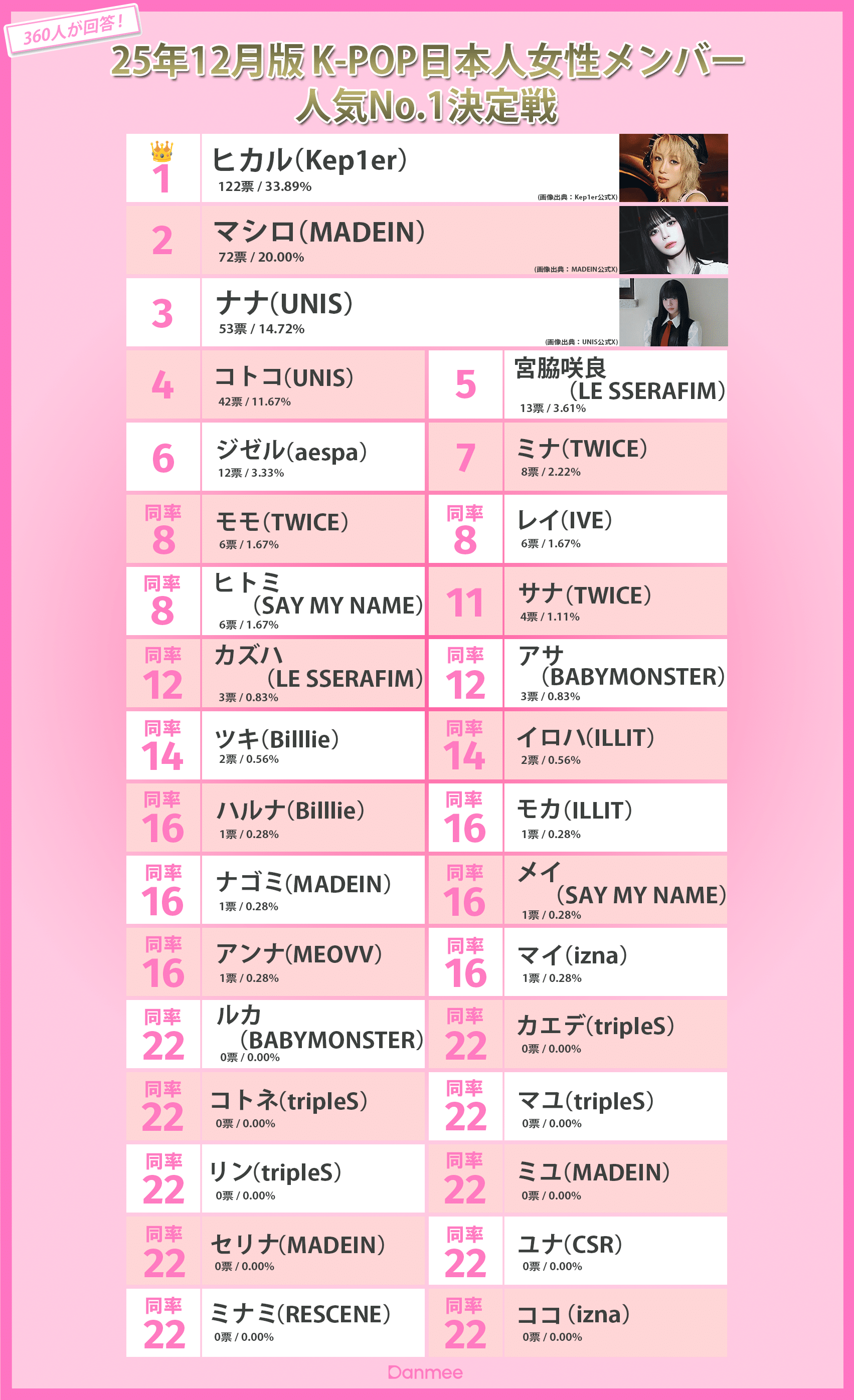 『25年12月版 K-POP日本人女性メンバー人気No.1決定戦』全順位