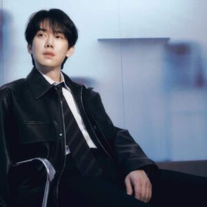 ユナはダークカラーのジャケットとボトムスを合わせ、ドリンクカップと頭上にかけたサングラスをアクセントに加えたカジュアルな外出スタイルを完成させた。自然な笑みとリラックスした姿勢が、旅先での日常の一場面を思わせる。