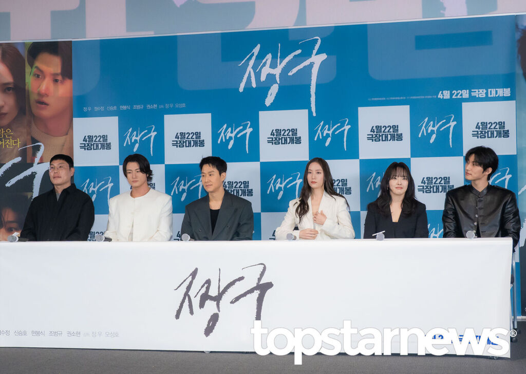 4月16日(木)、ソウル市 龍山区にあるCGV龍山で韓国映画『チャング』(原題:짱구)のメディア試写会が行われ、主演のチョンウ、チョン・スジョン、シン・スンホ、チョ・ボムギュ、クォン・ソヒョンが出席した。(©TOPSTAR NEWS/2026年4月16日撮影)