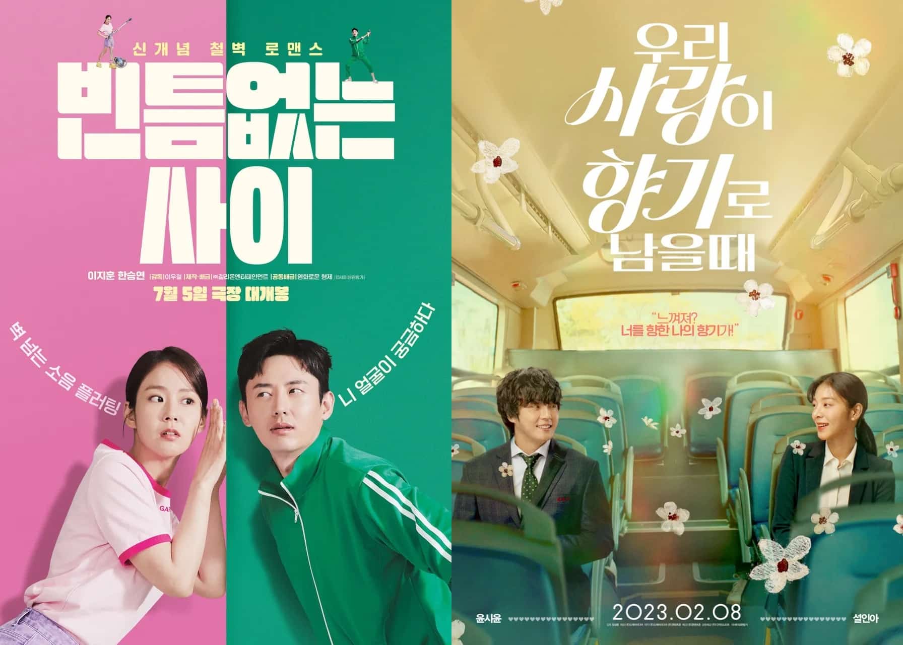 韓国映画『壁越しの彼女』(左)と『私たちの恋が香りとして残る時』(右) (画像出典:GALLEONエンターテインメント / CONTENTS ZONE, Daseinsoft)