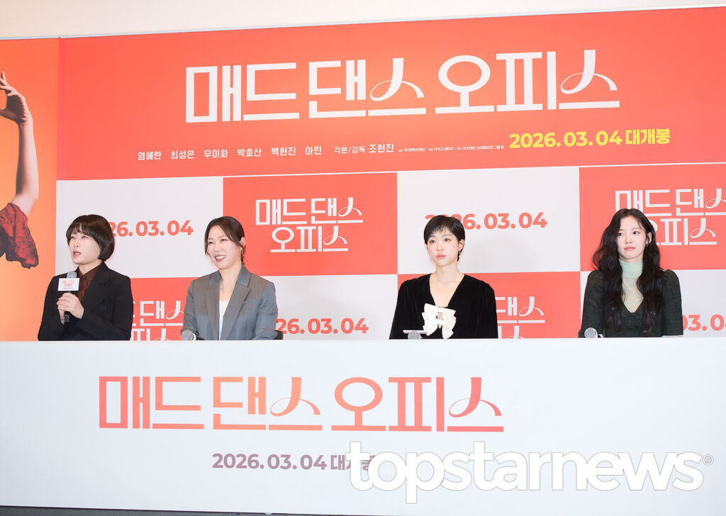 2月24日(火)、ソウル市 龍山区にあるCGV龍山アイパークモールで映画『マッド・ダンス・オフィス』(原題:매드 댄스 오피스)のメディア試写会が行われ、主演のヨム・ヘラン、チェ・ソンウン、OH MY GIRLのアリンが出席した。(©TOPSTAR NEWS/2026年2月24日撮影)